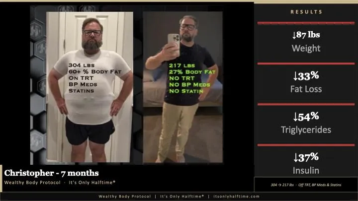 Tired, overweight, and over-medicated? The Wealthy Body Protocol helps high-performing men over 45 fix root causes, drop the weight, and ditch the meds. ...more