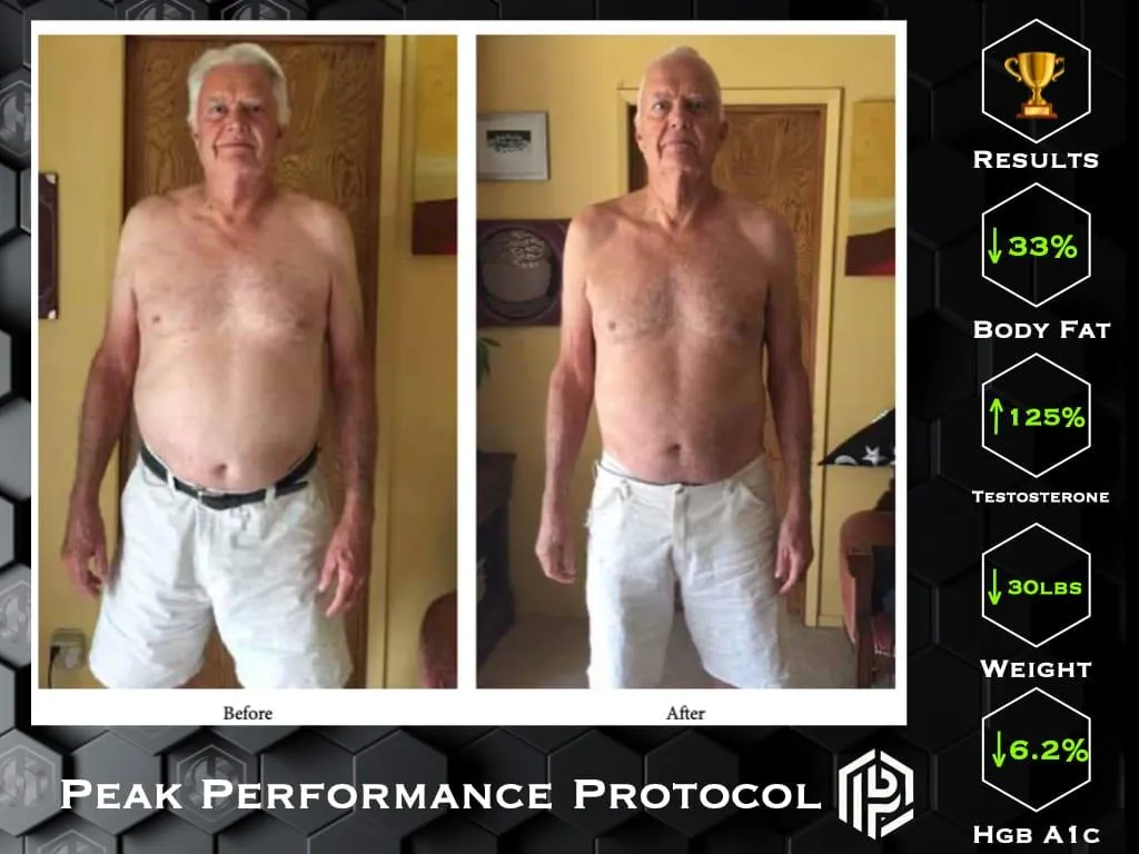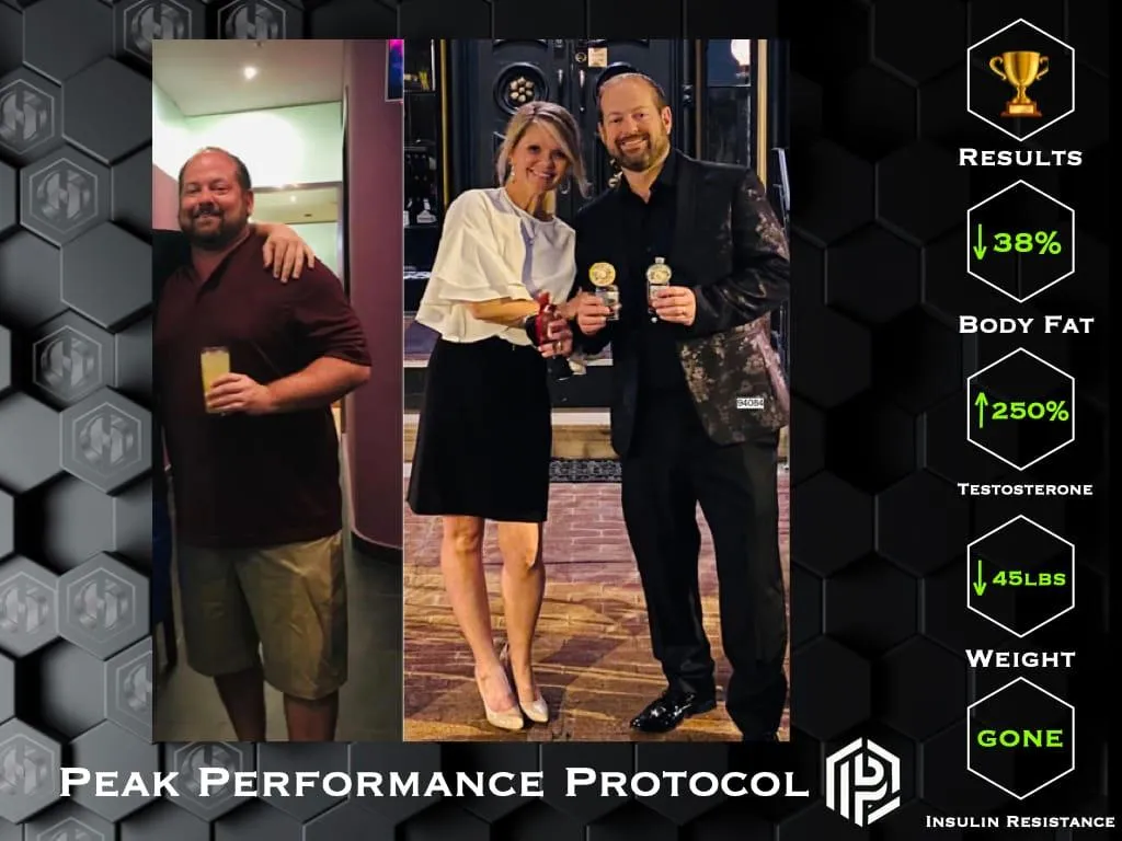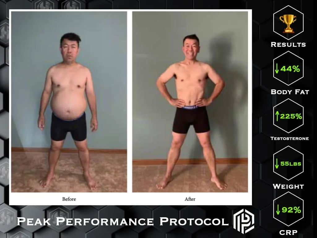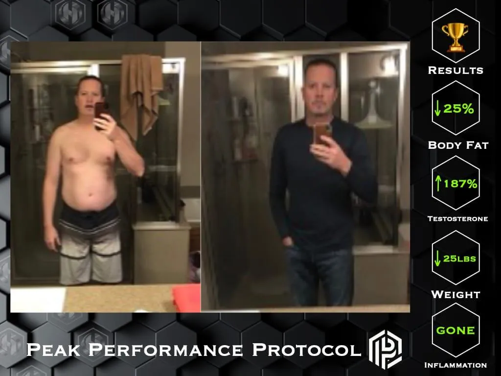 His approach was born out of personal experience. When faced with an autoimmune condition and low testosterone, he chose not to rely on medications. Instead, he applied the same principles now at the core of the Peak Performance Protocol — lifestyle, nutrition, and mindset — while asking his physician to monitor his progress.